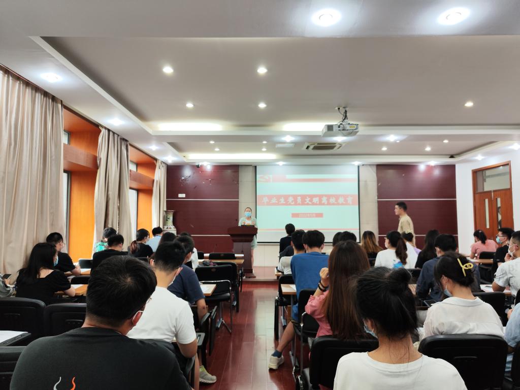 为了进一步强化毕业生党员意识和党员身份教育,强化毕业生党员组织纪律观念,明确党员责任,更好发挥毕业生党员在抗击疫情和毕业离校各项工作中的先锋模范作用,5月30日下午,环境与土木工程学院党委在学院楼D303举行2022届毕业生党员教育大会。院党委副书记兼副院长胡娟、院党委专职组织员沈炎老师、学工办主任周佳赟老师、辅导员何涛及全体毕业生党员参加了会议。