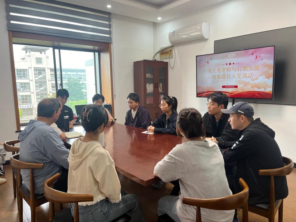 最后衡延笃老师和黄庆发老师与学院上半年发展的16位同学进行一对一谈话,考察入党动机、对党的认识、对党的基本理论知识的掌握、对时事政治、重大热点的看法以及对象自身的优缺点,旨在通过此次谈话加深发展对象对党的认识以及端正入党动机。