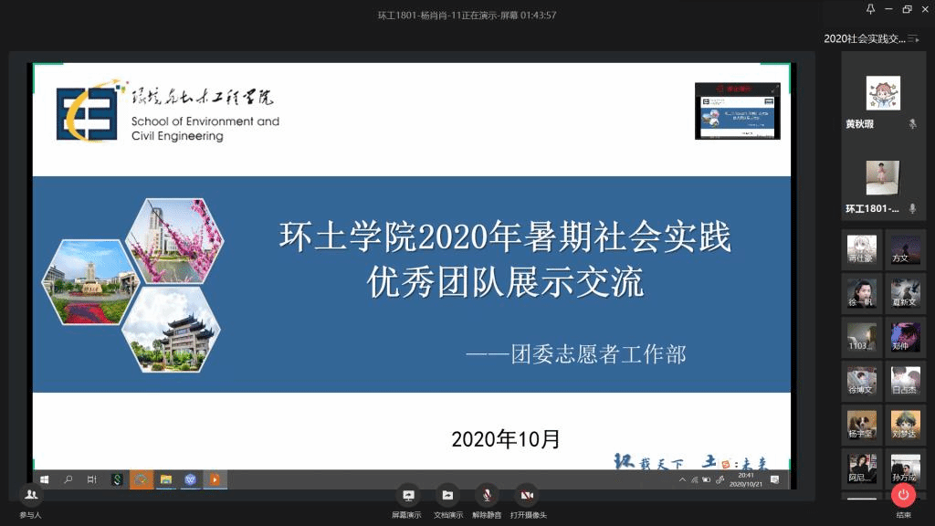 为帮助2020级新生了解并学习社会实践活动,环境与土木工程学院于2020年10月21日在线上开展了社会实践展示交流活动,环境与土木工程学院20级全体新生于线上参与学习。在辅导员何涛的组织下,由张磊、毛鹏涛、舒抒等同学为代表的优秀团队通过线上展示交流的形式与18porn