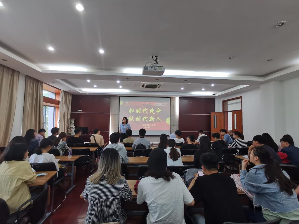 周佳赟的党课以“担时代使命,做时代新人”为题,寄语全体毕业生党员,要认真学习习近平总书记视察清华大学的重要讲话精神,树立远大理想目标,勇扛时代大旗,在奋斗中释放青春激情、追逐青春理想。何涛以“青春在追光中闪耀”为题,以《觉醒年代》中的党史人物为例,引导毕业生坚定理想信念,追逐信仰之光,到西部、到基层去,到祖国和人民最需要的地方去。