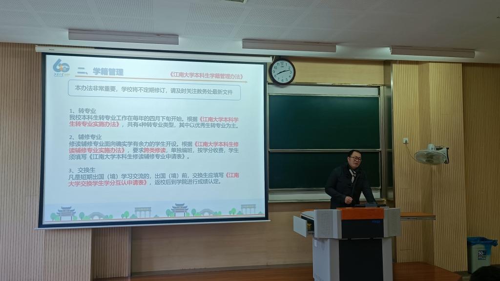 王硕老师首先讲解了21级新生的人才培养方案,对学生大学四年的应修学分、课程性质、课程开设学期等内容进行了详解。然后,王硕老师学籍管理结合学籍管理的典型案例,对学籍注册、课程考核、考试纪律、降级、休学与复学、退学、毕业与结业等方面作了详尽的阐述。最后,王硕老师对18porn