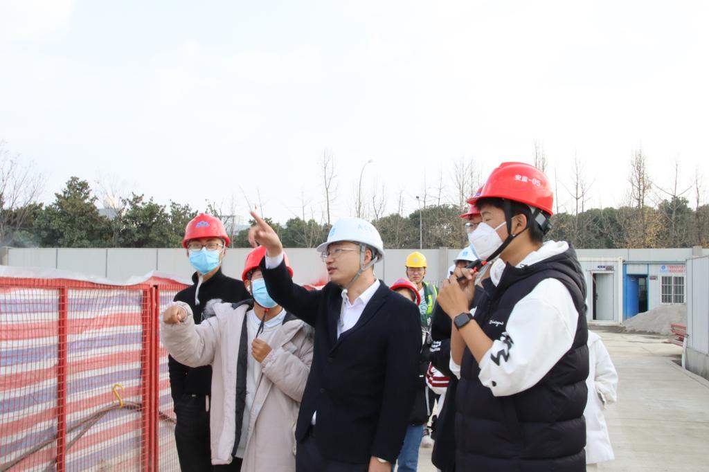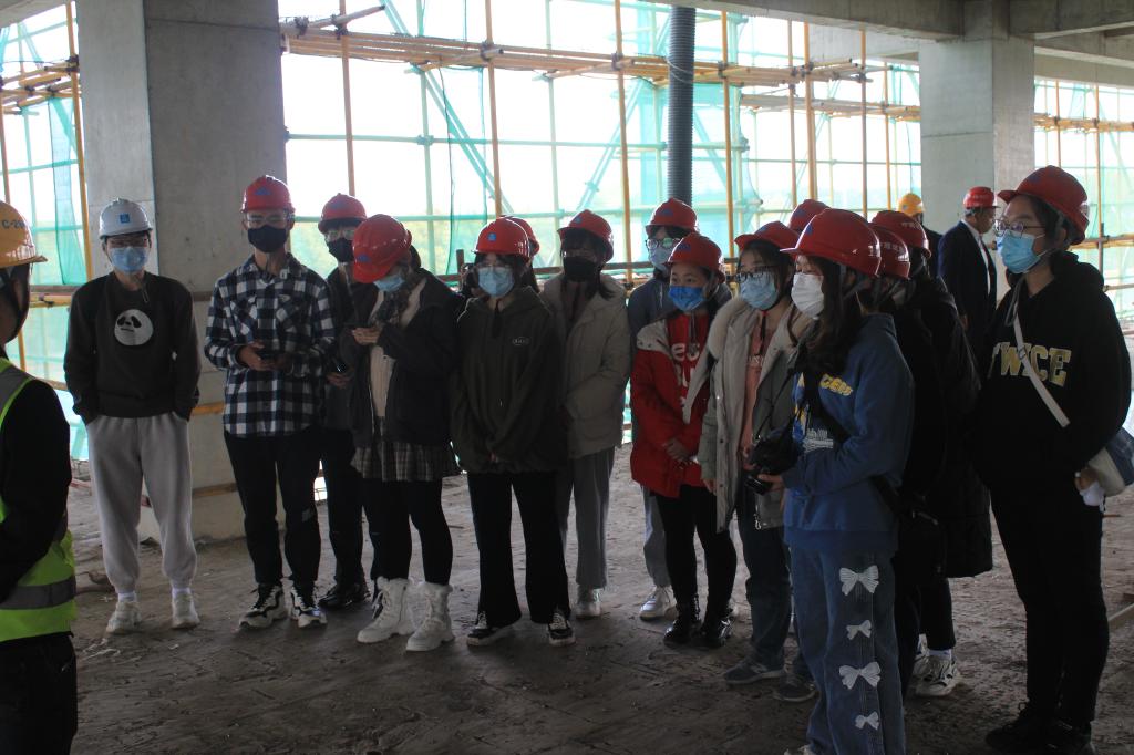 无锡硕放机场项目质量部部门经理钟致鑫带领学员参访了行政办公楼项目,实地讲解安全注意事项、施工工艺及项目概况。从安全帽不同颜色的含义,到塔吊基础垫坑等,带领学生全方位了解项目现场,零距离感受“万丈高空楼如何平地起”。钟致鑫还带领学员参观了工友之家、员工休息区,感受工作人员的日常生活。