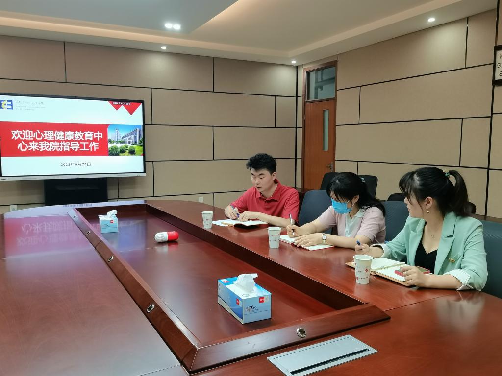 学院从工作条件、组织管理和队伍建设等方面,对学院心理健康教育工作进行了汇报。学院设置了专门的心理健康教育工作室,并且正常开展心理咨询、团体辅导等心理教育活动。学院还通过党政联席会、学工例会等研讨布置心理健康教育工作,同时注重培养和管理一支具有较高心理自助与助人能力的学生骨干队伍,会建立学院心理委员群和寝室长群,充分发挥学生干部在心理健康教育工作中的桥梁与纽带作用。