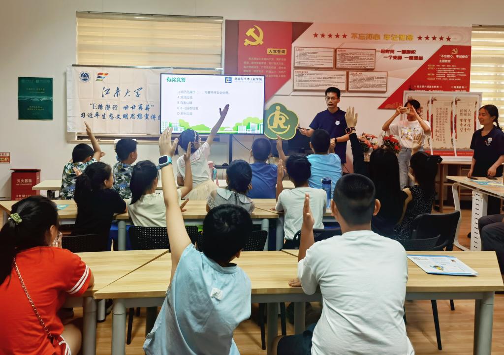 环境与土木工程学院辅导员周期老师带领“E路潜行,廿廿再薪”习近平生态文明思想宣讲团一行12人,到无锡市崇安寺街道东河花园社区开展环保主题宣讲,在宣讲会上与社区内的小学生们进行互动和交流。东河花园社区负责人陈怡西参与了会议。