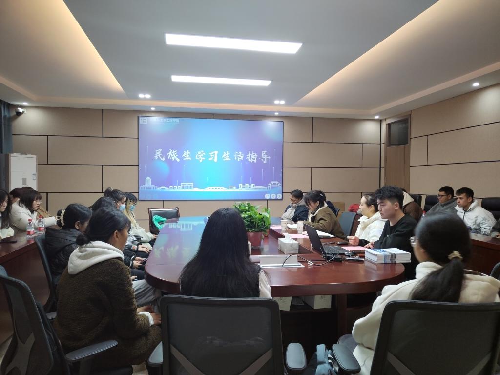 古扎努尔从校园文化活动、学业、经济和学生管理制度等方面进行了介绍,鼓励同学们积极参与校园文体活动,还介绍了优秀民族生代表,引导民族生。古扎老师提醒同学们要树立底线思维,重视学业成绩,不能触碰学生管理制度的红线,珍惜大学时光好好学习,多尝试多交友。胡文波鼓励同学们多多尝试学校不同食堂的美食,合理调整作息,保持身体健康状态,谨防网络诈骗及网络不良言论等越界行为,当生活、学业、家庭、经济、心理方面存在压力时,及时找辅导员、派驻教师寻求力所能及的帮助。