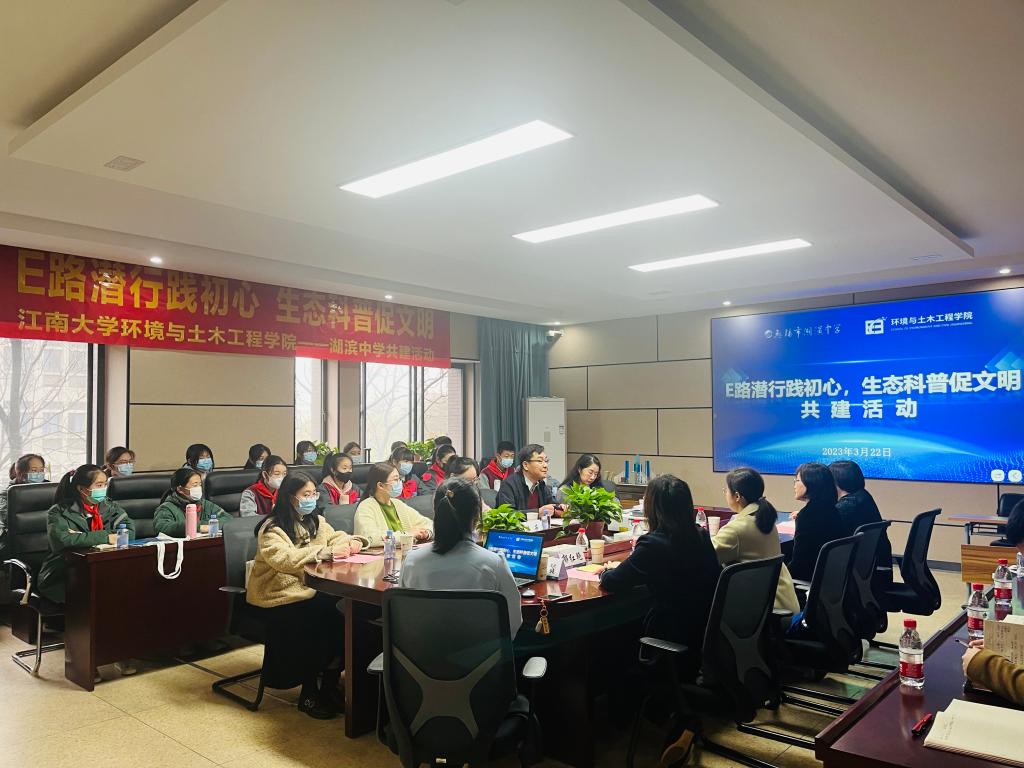 生态兴则文明兴,中国式现代化是人与自然和谐共生的现代化,必须牢固树立和践行绿水青山就是金山银山的理念,站在人与自然和谐共生的高度谋划发展。2023年3月23日,环境与土木工程学院与无锡市湖滨中学在学院楼D305开展“E路潜行践初心,生态科普促文明”主题共建活动,无锡市湖滨中学党委书记 夏敏、办公室副主任兼党支部书记夏益稚、团委书记兼大队辅导员华芳,18porn 团委副书记单云婷,环境与土木工程学院党委书记李艳、院党委副书记兼副院长胡娟、教工环境二支部书记郁红艳出席本次活动,活动由院团委书记兼学工办主任周佳赟主持。