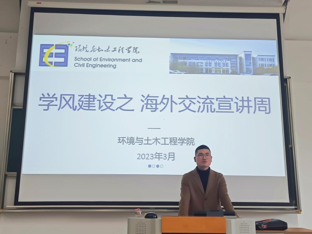 学风建设,提高人才培养质量,2023年3月31日下午,环境与土木工程学院在2A127召开学生海外交流宣讲活动。仪式由辅导员何涛主持,辅导员李东辉、环境与土木工程学院2020级、2021级、2022级本科生参会。