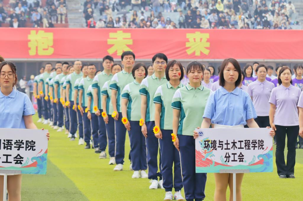 校长陈卫的开幕式讲话拉开了运动会的帷幕,各学院独具特色的方阵表演点燃了现场的氛围。“环土英才,建设未来!”,伴随着响亮的口号,环境与土木工程学院代表队踏着整齐的步伐,神采飞扬、目光坚定地走向主席台,接受领导的检阅,尽显环土的英姿。