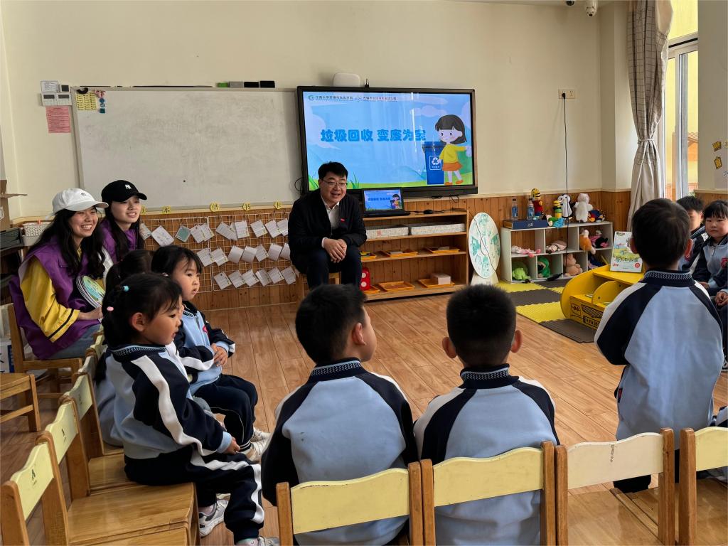 薛羚伟用生动形象的语言,结合丰富多彩的图片,向小朋友们介绍了生活中暴增的垃圾及其对环境造成的污染,详细讲解了垃圾分类的基础知识,并进行了现场演示。