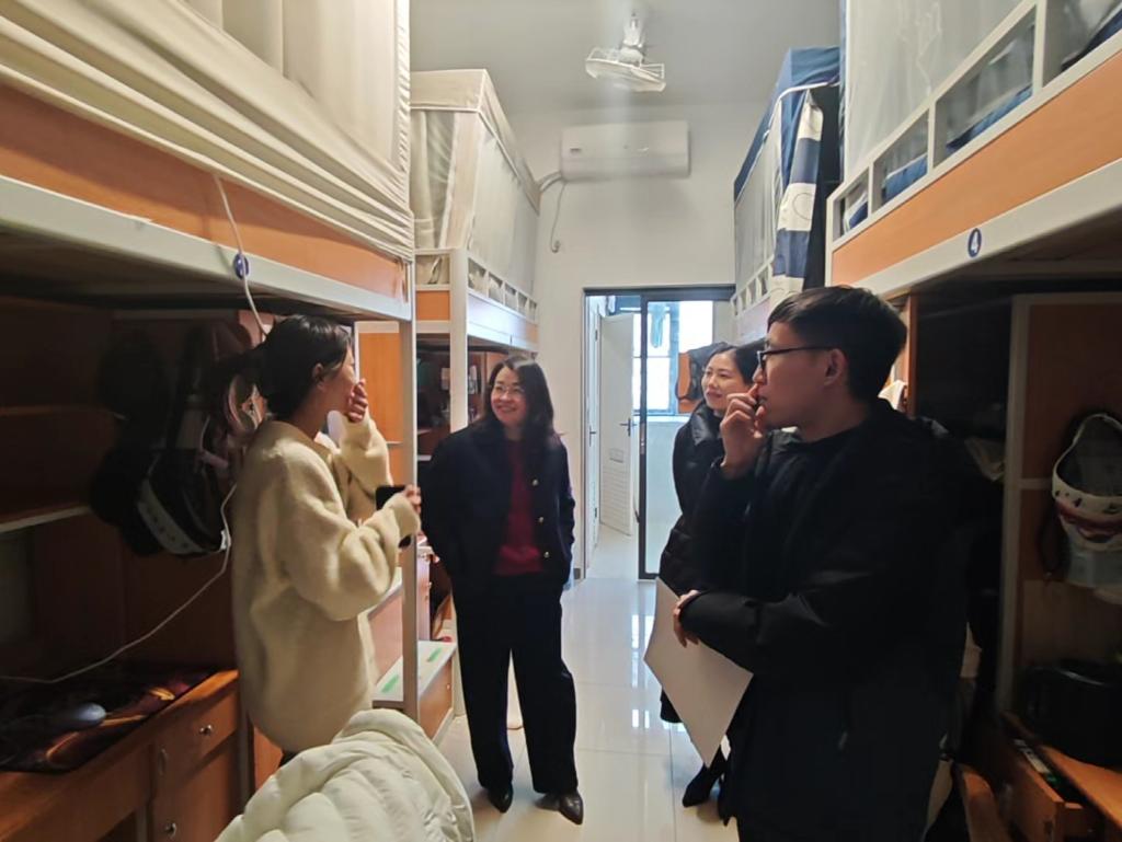 党委副书记兼副院长胡娟及辅导员团队深入学生宿舍开展走访活动,为学生送上暖心关怀,筑牢校园安全防线,为新学期学生管理工作奠定坚实基础。