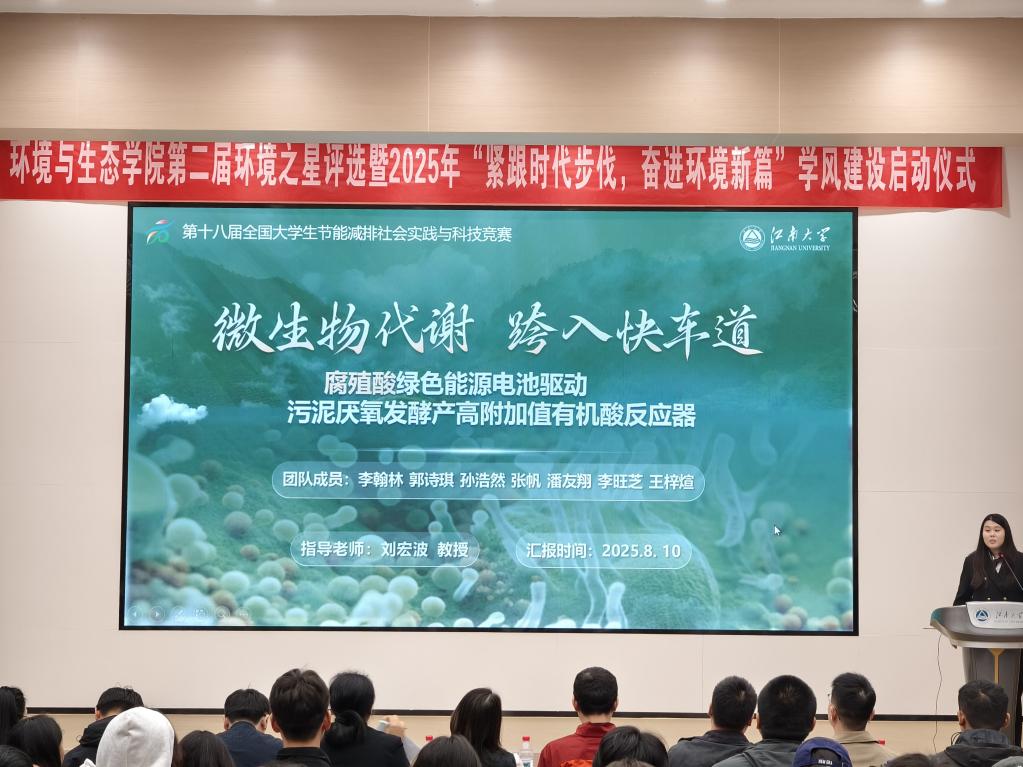 此次活动以学风建设为核心,以典型选树为依托,既为优秀学子提供了展示风采的平台,也为全院学生树立了可感可学的榜样。下一步,学院将以此次启动仪式为契机,持续深化“环境之星”评选等育人品牌活动,通过“学霸讲堂”学业帮扶,“科创竞赛”创新驱动等多元举措,不断浓厚育人氛围,助力环境学子在生态环保的赛道上深耕细作,成长为守护绿水青山的栋梁之才。