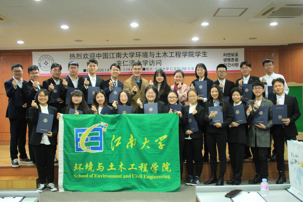1月8日,辅导员周佳赟、何涛带队,21位同学前往韩国仁济大学进行为期一周的海外交流学习。在仁济大学,同学们认真聆听系列全英文课程,在课间课后与教授热情互动,并在最终的小组答辩展示中获得认可。在海外交流期间,同学们参观了釜山港口的施工现场,蔚山现代重工业,金海水循环中心和釜山环境工团海云台营业所,了解韩国在土建工程以及环境资源处理方面的相关举措。在学习之余,同学们也一起参观了金海木材文化博物馆、GAYA主题公园等,感受韩国的人文风情与历史底蕴。