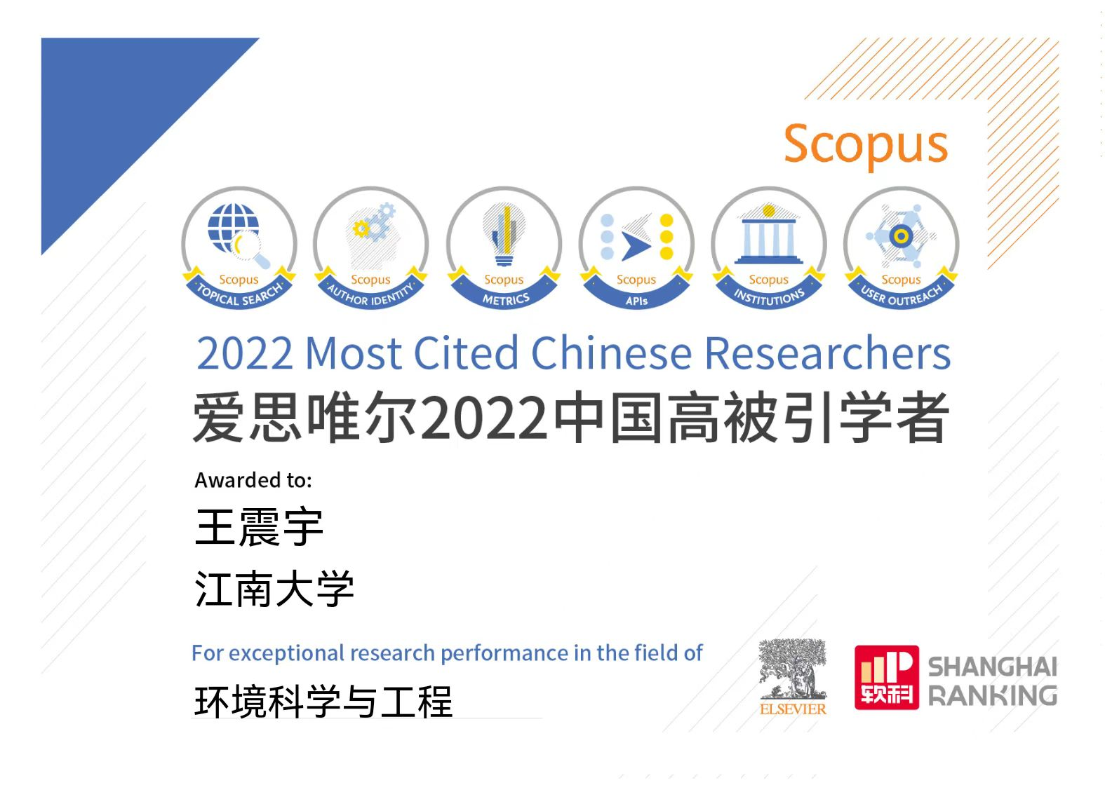 环境与土木工程学院王震宇教授继2019-2022连续四年入选科睿唯安全球“高被引科学家”和爱思唯尔2020、2021“中国高被引学者”名录之后,再次入选2022“中国高被引学者”榜单。王震宇教授连续入选高被引学者榜单也标志着我校环境学科的科研水平和影响力逐年持续提升。