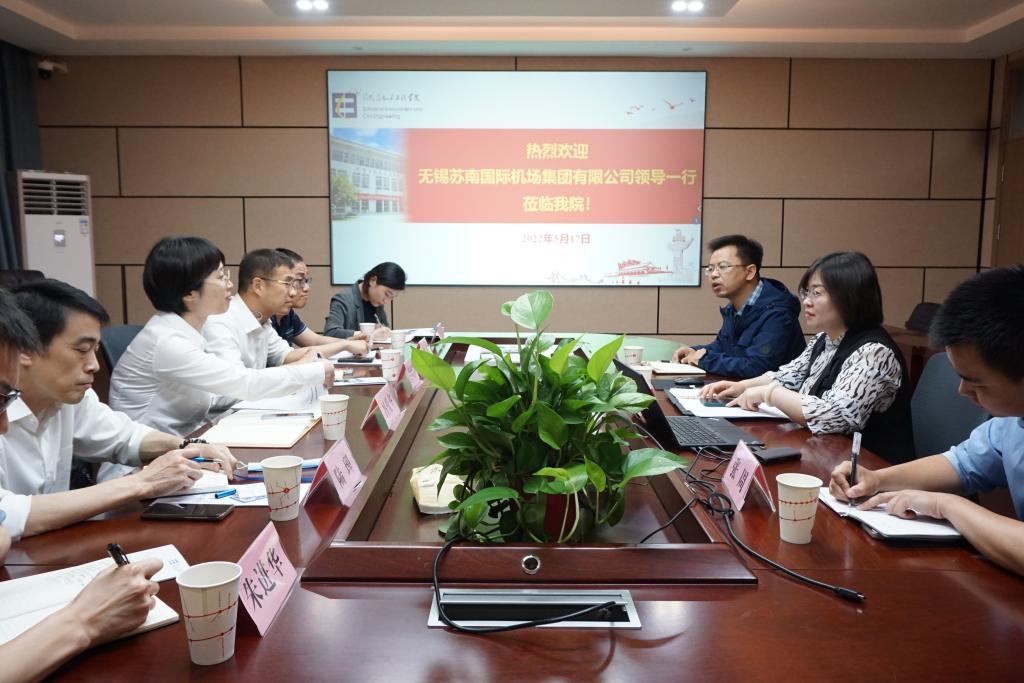 与无锡苏南国际机场集团有限公司开展访企拓岗调研活动。企业管理部副部长冯爱华、企业管理部主管徐培倾、市场营销部经理陆理、综合部主管张旭,环境与土木工程学院副书记胡娟、教师代表赵明星教授、张周老师出席本次活动。
