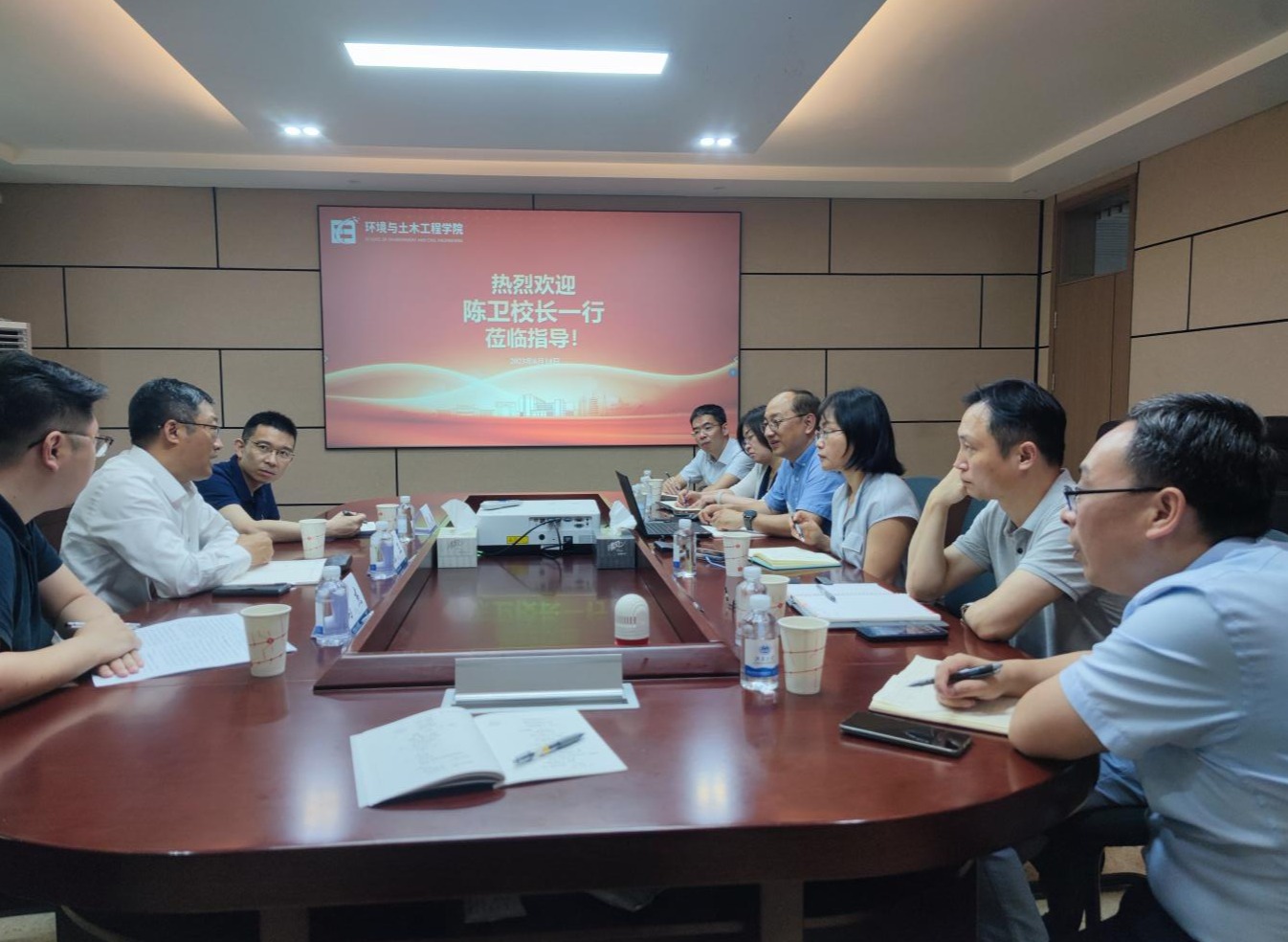 校长陈卫赴环境与土木工程学院调研指导,校长办公室主任黄敏陪同调研,环境与土木工程学院党政领导班子全体成员参加调研会。