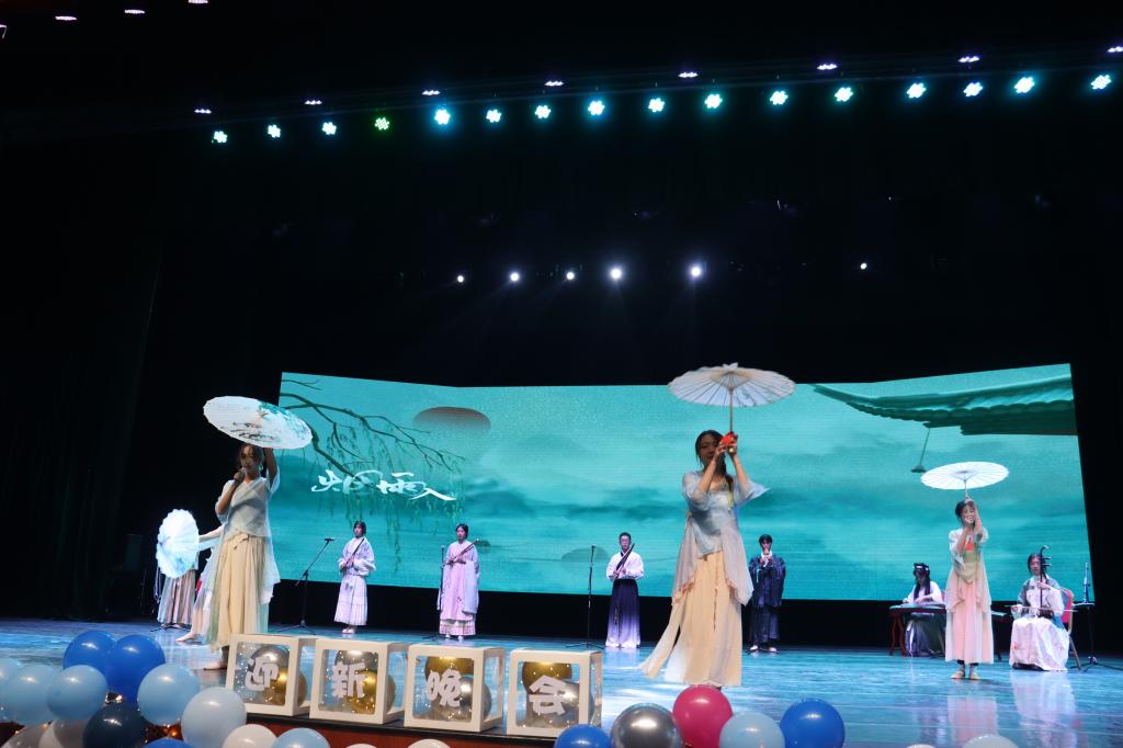 种子话剧团带来话剧《洪流》,观众的思绪被拉回1919年,还我青岛的铿锵怒吼,是千千万万中国人灵魂的悲鸣,响彻云霄,让世界为之颤栗。古风乐舞也在此刻绽放异彩,由环境科学硕士生和环境工程2301班带来的《赤伶》和《红昭愿》,余音绕梁,带给观众听觉与视觉双重感受。土木21级硕士生校舞蹈部带来舞蹈《killshot》,兼具力度与美感,台下掌声不断。制燥音乐俱乐部带来结尾表演《乐之城》,热烈而又激情的音符悦动,为晚会画上了圆满的句号。