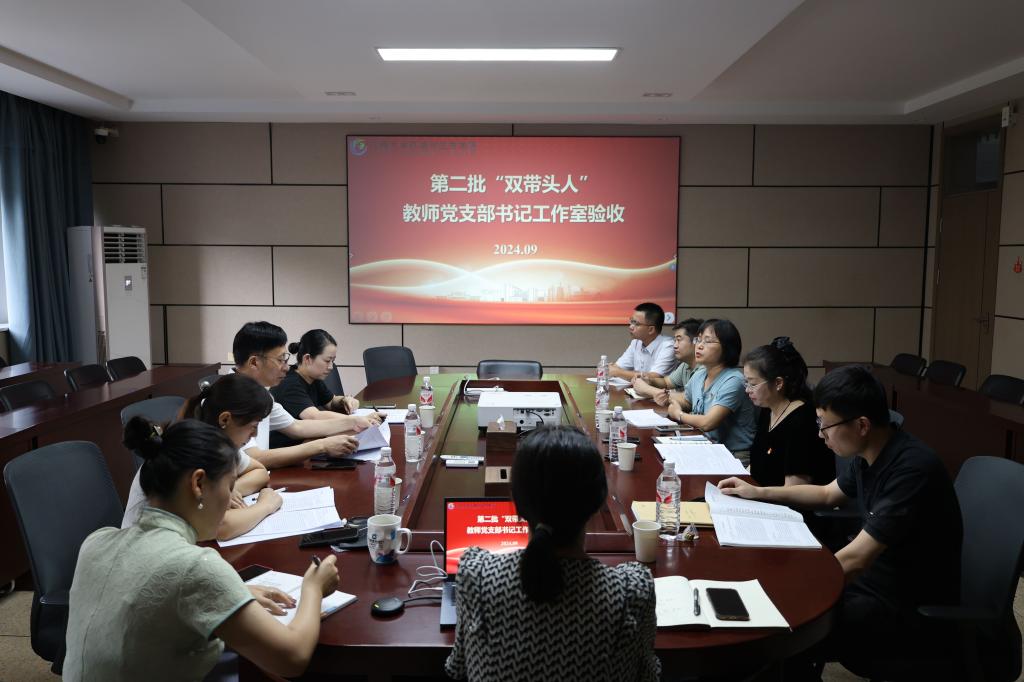进行学校第二批“双带头人”教师党支部书记工作室实地考察验收。院党委书记李艳主持,院党委副书记胡娟、学院教工党支部支委参会。