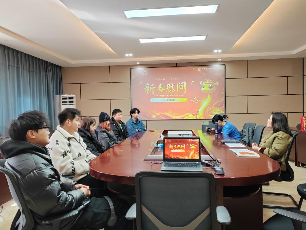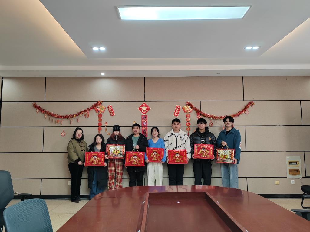 在学院楼D305会议室开展留校学生新春慰问,学院党委副书记兼副院长胡娟、辅导员李猛以及全体留校学生参加。