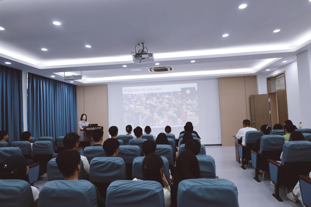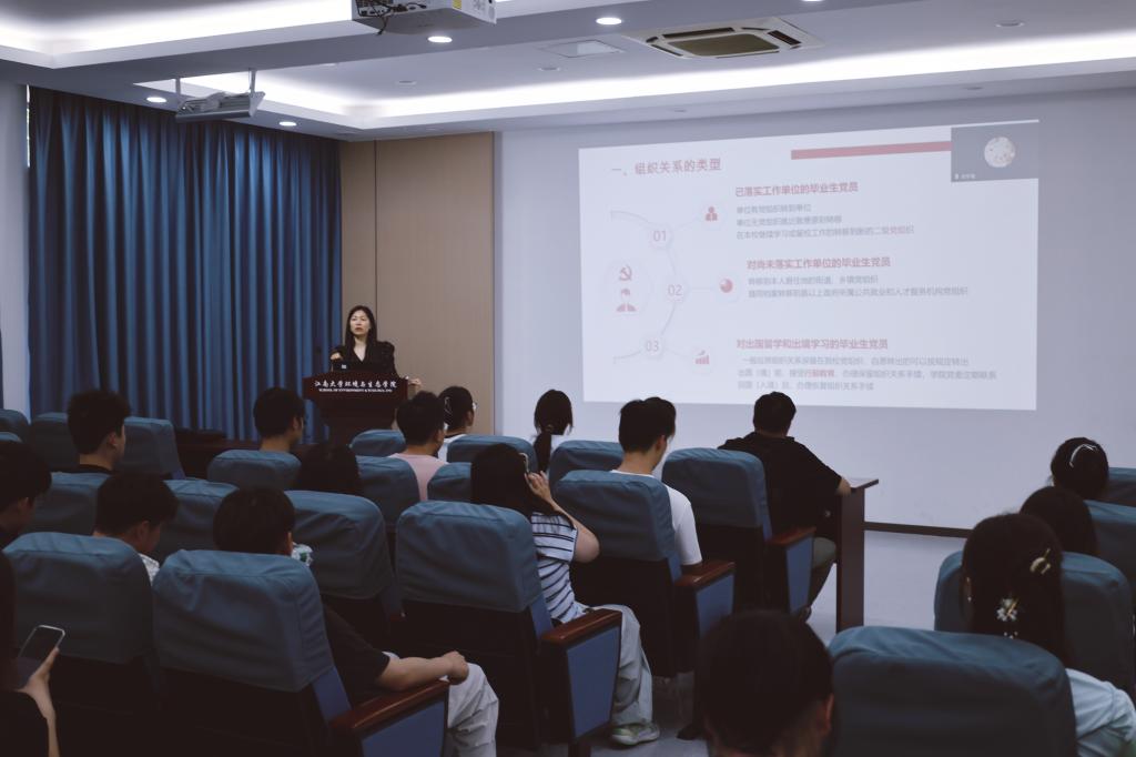会议伊始,胡娟为全体毕业生党员讲授毕业前的最后一次党课。该党课以“学习中央八项规定精神,筑牢廉洁自律防线”为题,围绕中央八项规定与中央八项规定精神的具体内容、党的十八大以来深入贯彻中央八项规定精神的成效和经验、部署近期党建工作三个方面展开。胡书记强调,全体毕业生党员要深刻领会党的作风建设的重要性以及优良党风对于社风民风的引领作用,即使在步入社会从事工作后,党员们也必须时刻保持清正廉洁的政治本色,以实际行动践行党的优良作风,为营造风清气正的社会环境贡献力量。