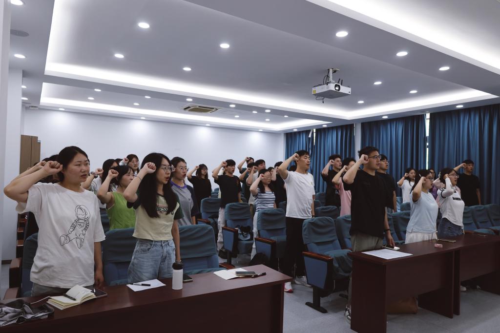 随后周期就毕业生党员档案资料整理、党组织关系转接工作进行了详细说明。她强调党员档案材料是党员身份的重要证明,完整、准确的档案材料对于毕业生党员至关重要,毕业生党员要规范党员档案管理,切实做好档案移交工作。另外她就毕业生组织关系转接相关注意事项进行说明,强调党组织关系转接是毕业生党员离校期间的一项关键工作,要密切配合党支部开展好这项工作。活动最后,全体毕业生党员高举右拳,重温入党誓词,铮铮誓言表达了党员们对党的忠诚与为共产主义事业奋斗终生的坚定决心。