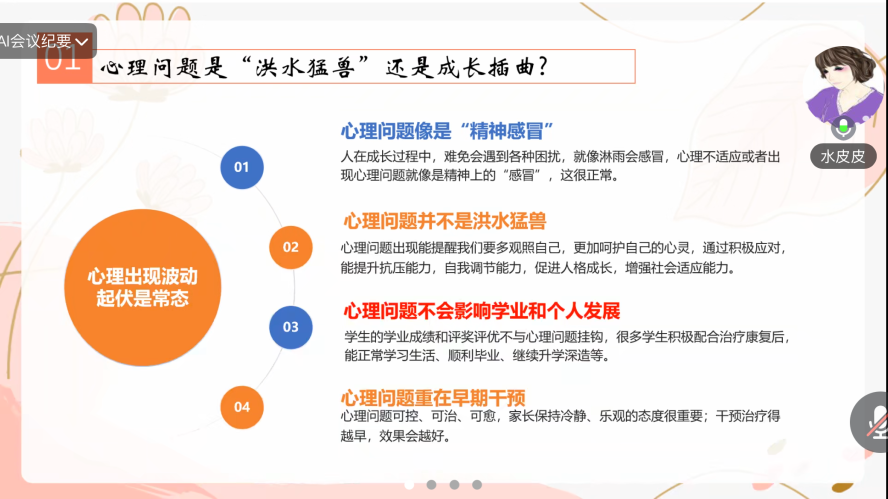 家校携手育新人,同心共话成长路。当日下午,学院举办新生家校见面会暨2025级新生心理健康教育讲座。学院心理辅导员周期老师围绕“大学生心理发展特点与问题表现”“新生常见心理问题的家长应对方法”及“校内外心理服务资源介绍”三大主题展开讲座。她强调,家长应积极关注学生心理状态,家校协同、双向奔赴,共同助力学生健康成长与发展。