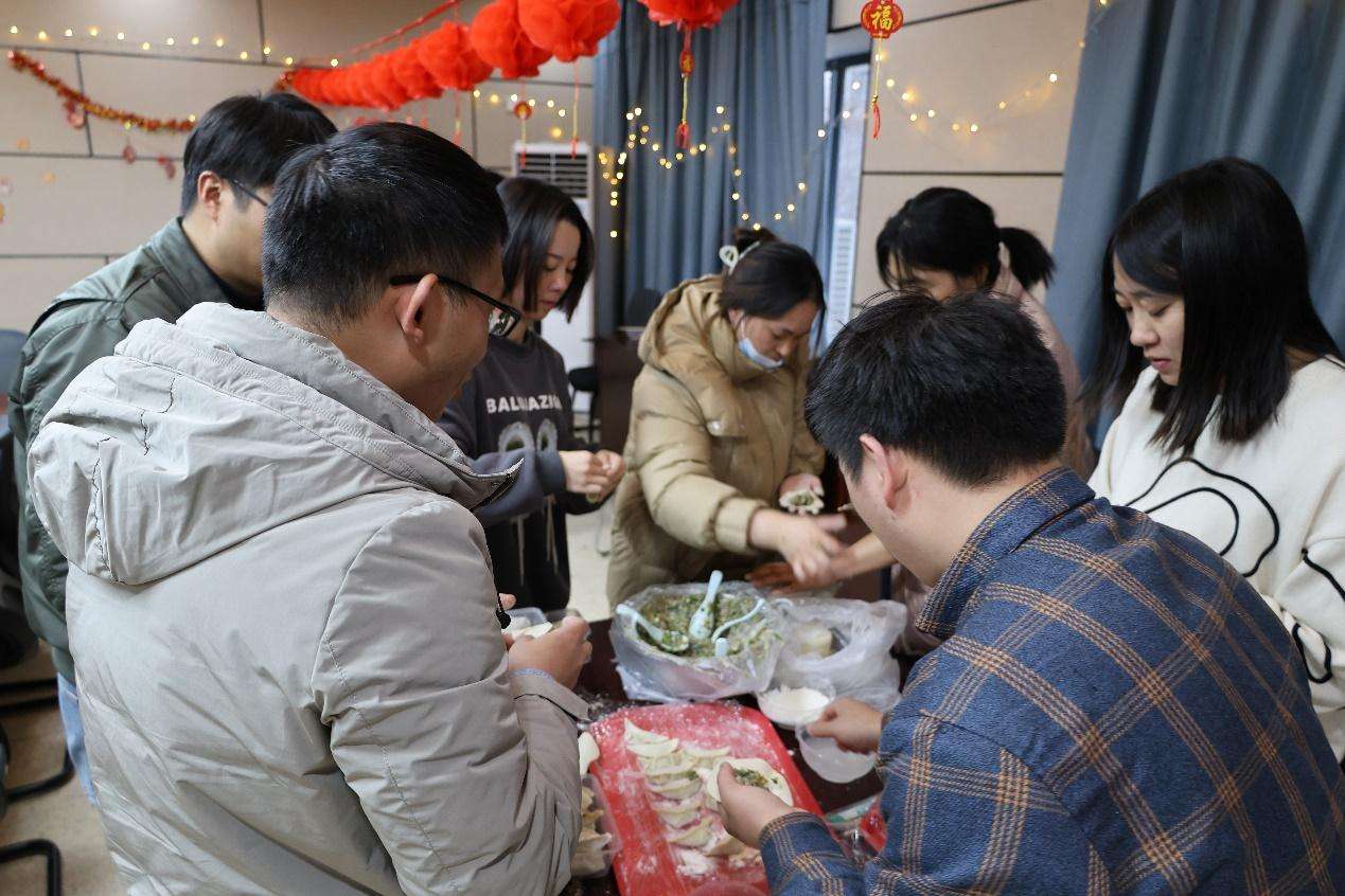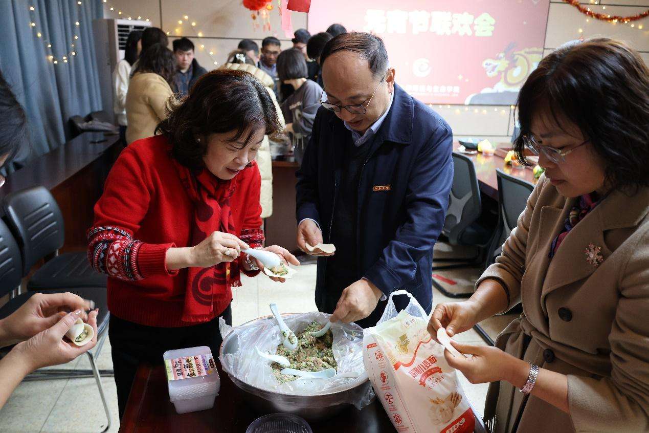 猜灯谜是中国独有的传统民俗文娱活动形式,面对一道道灯谜,老师们兴致勃勃,积极开动脑筋,在一次次谜底揭晓中传递知识、分享快乐,活动现场氛围轻松热烈。一口软糯的汤圆,凝聚了老师们对新年新学期的美好希冀。学院工会为老师们提供了多种口味的汤圆之余,为丰富庆祝形式,预先准备好饺子馅,老师们分工协作,有的擀面皮,有的做造型,有的捏花边,欢声笑语,其乐融融。当大家品味自己亲手制作的食物带来的唇齿留香,笑容洋溢在每位参与者的脸上,欢乐的气氛回荡在学院的每一个角落。
