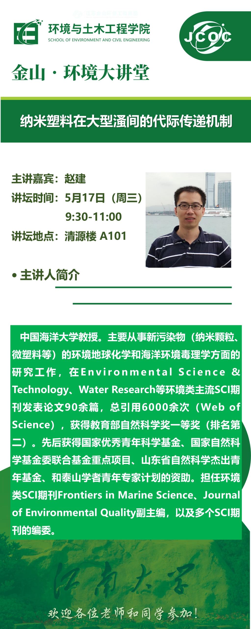 金山·环境大讲堂--赵建:纳米塑料在大型溞间的代际传递机制