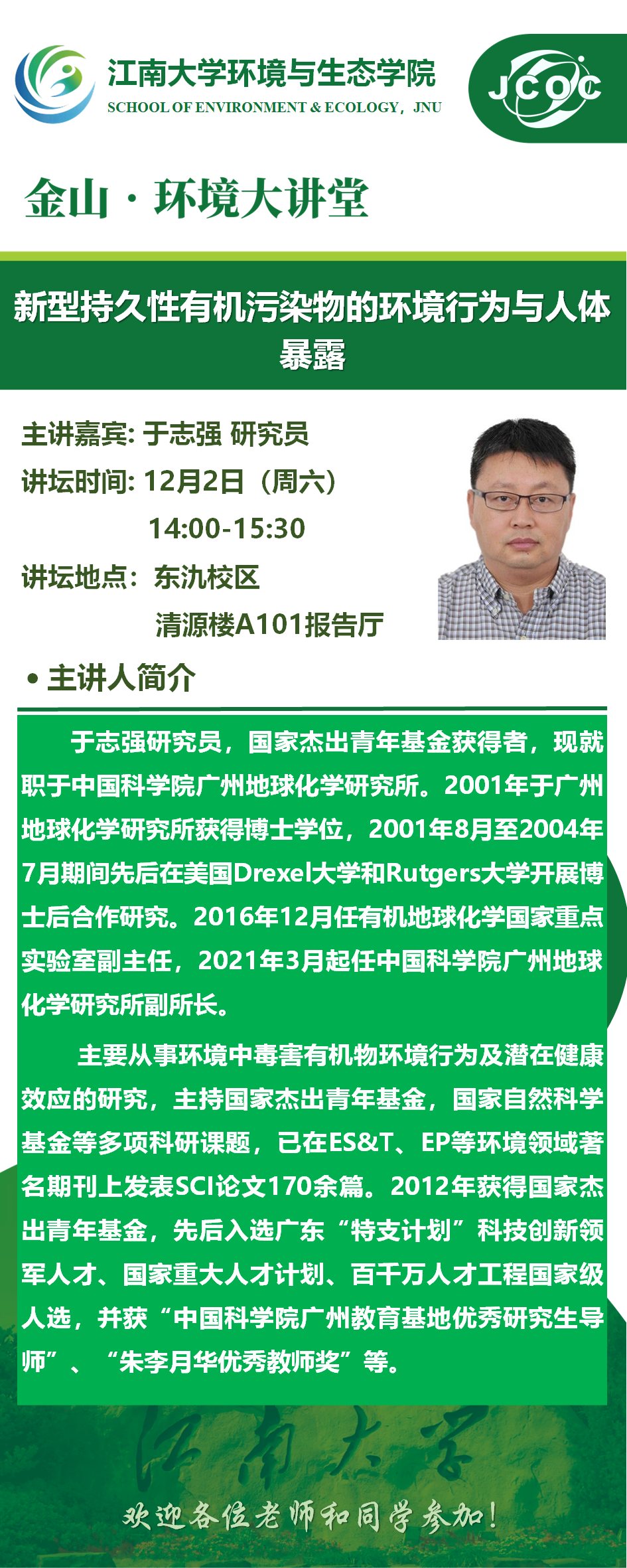 金山·环境大讲堂——于志强:新型持久性有机污染物的环境行为与人体暴露