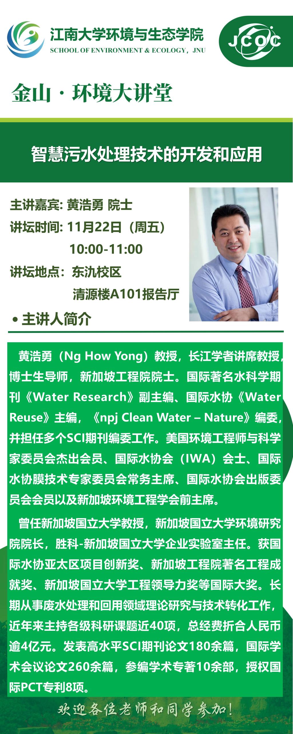 金山•环境大讲堂——黄浩勇:智慧污水处理技术的开发和应用